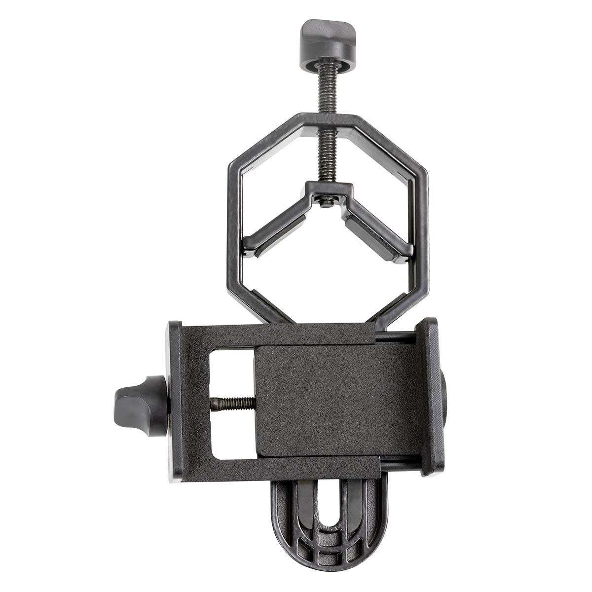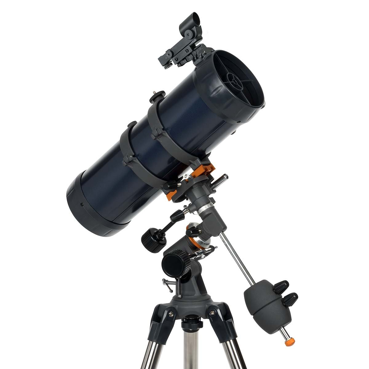 La montura AstroMaster viene con dos perillas de control de movimiento fino que te permiten realizar ajustes finos de puntería en el telescopio en los ejes de ascensión recta y declinación, también conocidos como RA y DEC.